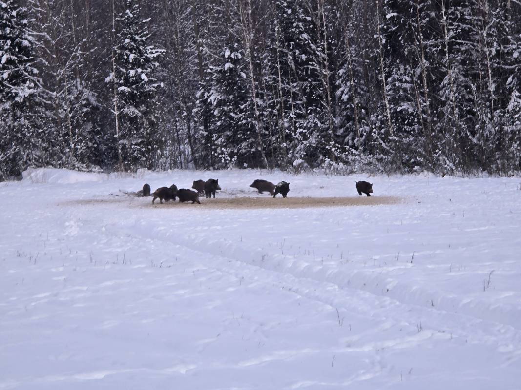 DM-1984 Опубликовано 28 января Автор Опубликовано 28 января Всем доброго вечера. В выходные провёл очередную охоту закрывающую сезон 2025 года на капыта. Созвонившись с хозяйством отправился с семьёй в РБ. Охота предстояла на оленя. Хозяйство для меня новое, поехал по рекомендации. Охота предполагалась следующая: садимся на вышку в 16-ть, до 19 сидим, если нет выхода, то пробуем подход, но снега по пояс, что осложняло охоту. Итак проверев пристрелку карабина в 16-ть сели на вышку, стоит отметить что качество вышки на высоте, стеклопакеты, кавралин, камфортные стулья, дистанция стрельбы в двух точках 125 метров. Сели с егерем, через 15 минут вышла коровка оленуха с телёночком, кормились примерно пол часа. Что-то её насторожило и она облаяв ушла в лес, через 5 минут после её ухода появилось стадо кабанов. Уж очень они вольяжно себя чувствовали на кормушке, бегав играя и резвясь, переместились на другое место. Спустя минут 30 вышел олень "шильничек" и прогдал кабанав, те в свою очередь не обидясь стали кормиться на диугом краю вышки. Пока шильник кормился вышел из леса секач, на взгляд кил. на 200, но приблизясь к оленю не стал выяснять отнашения ушёл обратно в лес своим следом. За оленем появились две фигуры кормящихся лосей. 1
