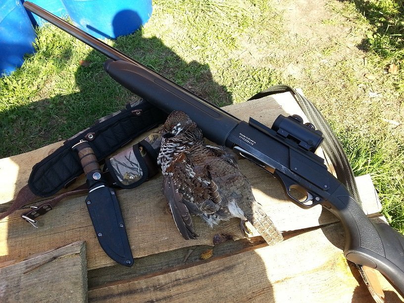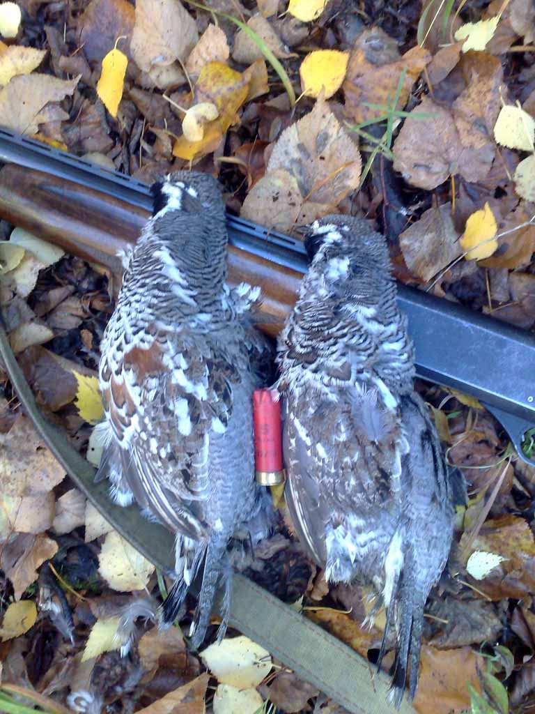 Андрюха_Верная Рука Опубликовано 22 сентября, 2012 Опубликовано 22 сентября, 2012 Ну вот и мой. Сегодня в семь часов выдвинулись с товарищем в лес к оврагу с ручьём. В 7:30 первый был взят Николаем с подхода, сидели на тропинке двое, он шёл первым, неожиданно бросил вещи и побежал, раздался выстрел и удача. Рябец уходил на своих двоих. Второй вспорхнул и улетел. Решили ждать. Манили минут 30, отзывался но не подлетал, я принял решение его скрадывать, пока Николай манил, я выдвинулся на встречу. Видел как он летает в стороне, бегает по земле, но на выстрел не подпускает. Выбрал деревце с низкой кроной и сел под ним. Минут через пять о чудо, он садится на ель от меня метрах в 25, блин, стрелять не удобно, пришлось встать, ружьё на вскидку. В последний момент он меня замечает, но палец на курке, выстрел.....и он пикирует в низ....всё....второго тоже взяли. Перекурили и решили что на сегодня хватит, пора на работу. День солнечный, погода просто супер, в лесу плюс десять, безветренно, самое то что нужно. 21.09.2012