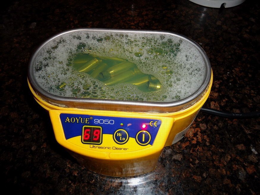 3 Января, 201214 г для достижения единообразия при релоаде, гильзы надо привести к одному размеру - это стабильность снаряжения от патрона к патрону. берём гильзу после выстрела, удаляем капсюль и получаем такую ляпу . ладно, едем дальше моем гильзу. мне больше нравится ультразвуковая мойка: быстро, качественно,удобно. в принципе не думаю что кто-то сможет "цифрами" доказать что патрон с мытой гильзой более точен, мне просто приятнее работать с аккуратно подготовленными компонентами - ручная работа как никак , и если готовый патрон будет лежать несколько месяцев, то нагар может негативно повлиять на порох. это начало "полоскания" ( две столовые ложки фериподобного ср-ва и чайная ложка столового уксуса) и через 15 минут мытья. несомненный плюс ультразвука - моет гильзы внутри и очищает капсюльный карман.
